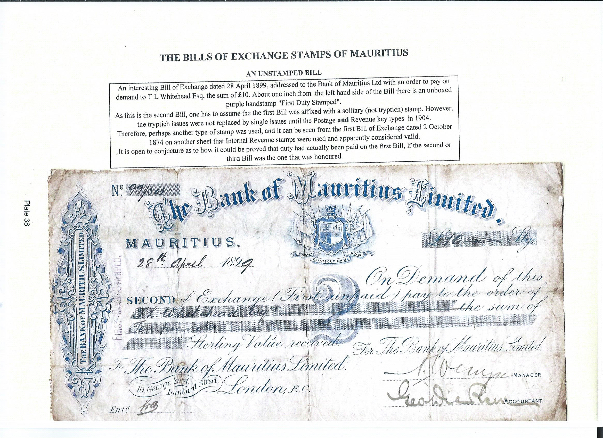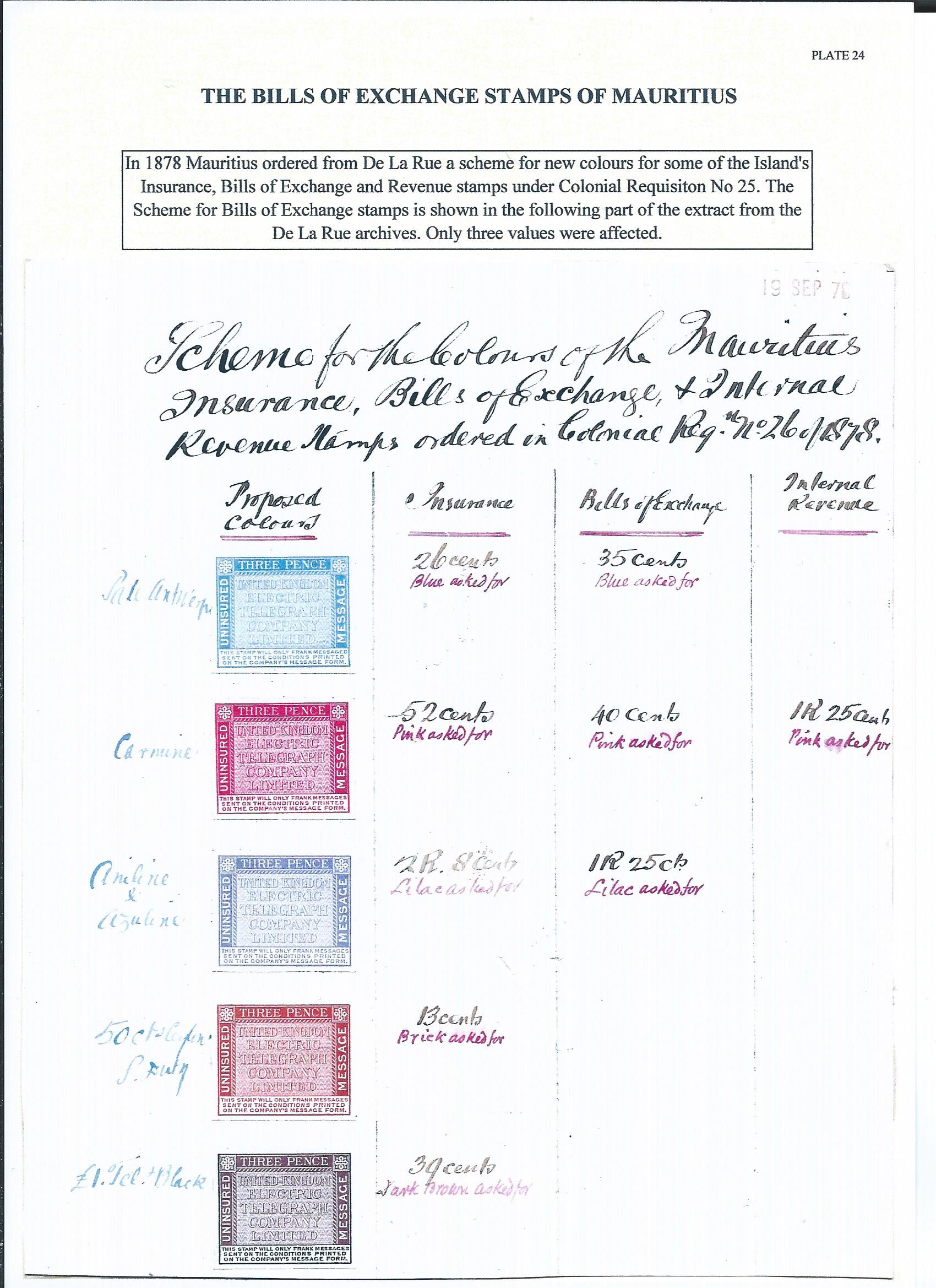 the Insurance, Bills of Exchange and Revenue stamps of Mauritius. De La